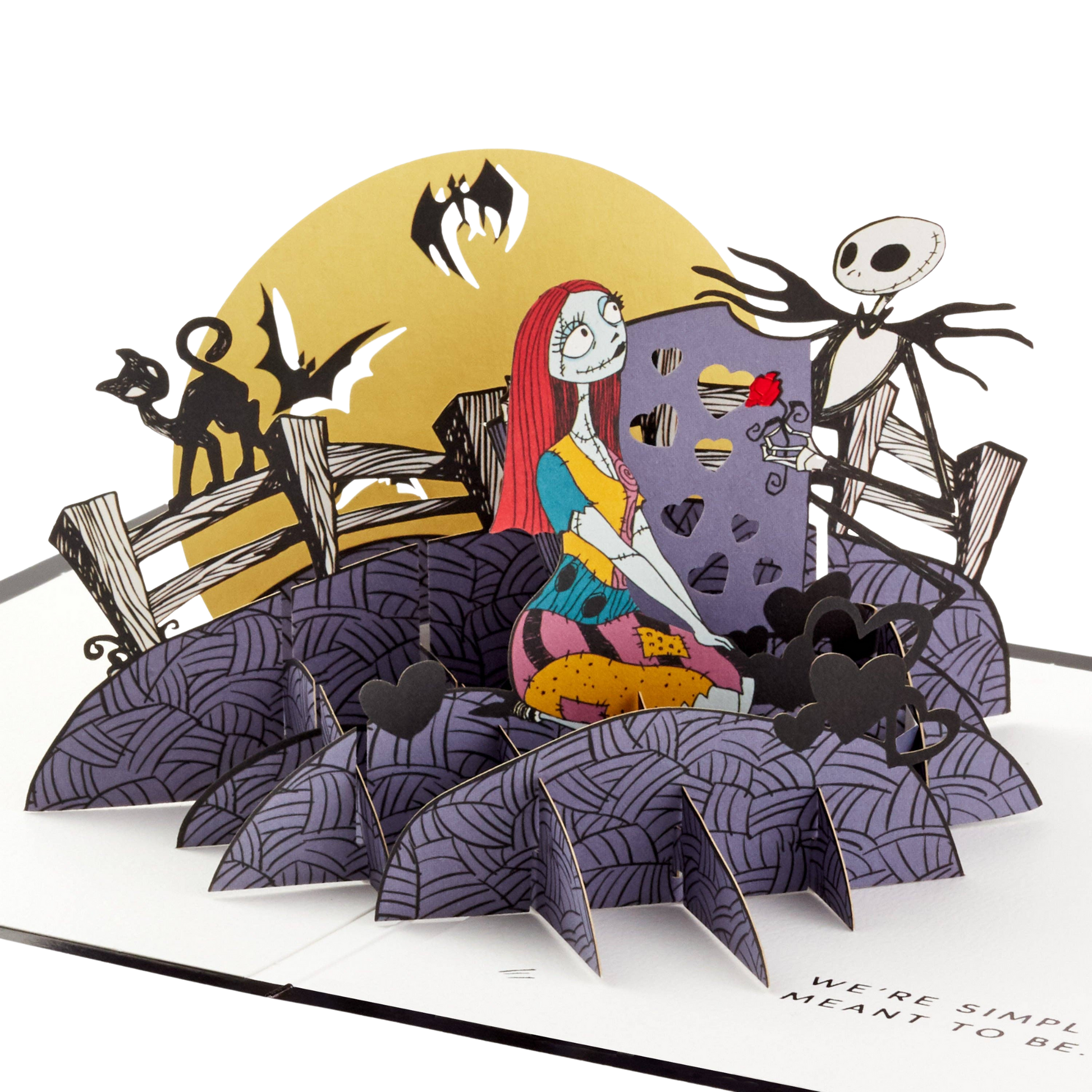 Show them how you're simply meant to be, and fill their day with spooky love, with this hauntingly beautiful 3D and pop-up love greeting card. The perfect way to celebrate a birthday, anniversary, Valentine's and so much more! This card is a frightfully fun gift for fans of Tim Burton's The Nightmare Before Christmas.